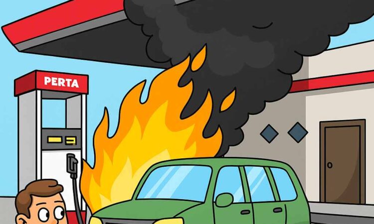Peristiwa kebakaran yang terjadi saat mobil tersebut tengah mengantre untuk pengisian BBM itu sempat menghebohkan warga sekitar. Api baru berhasil dipadamkan setelah sempat membesar dan nyaris menjalar ke kendaraan lain. Namun, hal yang mengejutkan terjadi setelah api padam.